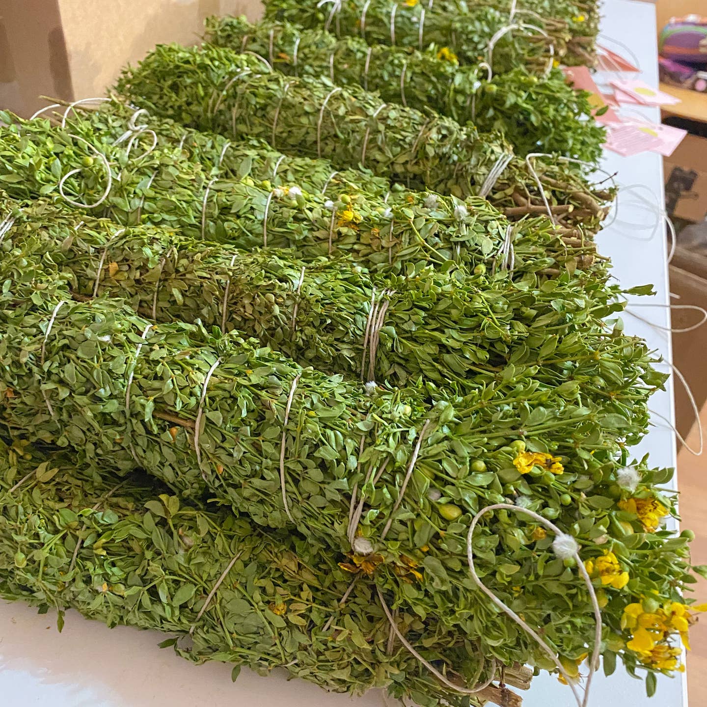 Experience the desert rain scent during every shower! Just tie this handmade bundle in your bathroom and the moisture from your shower’s steam will activate the oils in the creosote (chaparral) leaves. It will release the smell of a monsoon, again and again. This is a natural product and will eventually wear out, but not before many weeks of enjoyment.